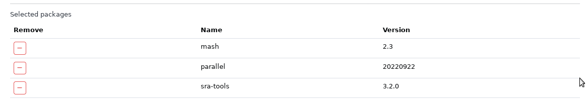 Select the Conda tab and choose the following tools with their version numbers given below for installation via Conda: