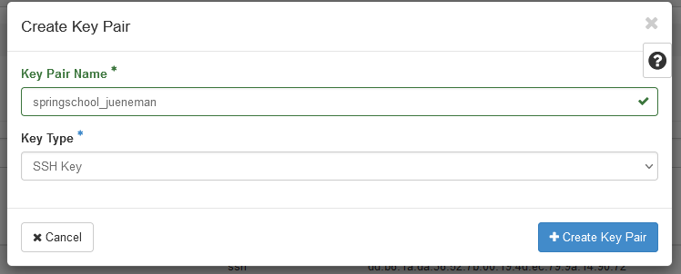 2.(optional) If you have already a personal ssh key-pair, you can also upload your public key here instead of generating one.