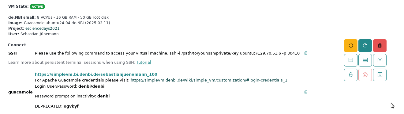 You start this tutorial from your profile page (https://simplevm.denbi.de).
